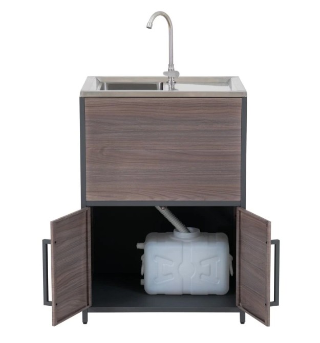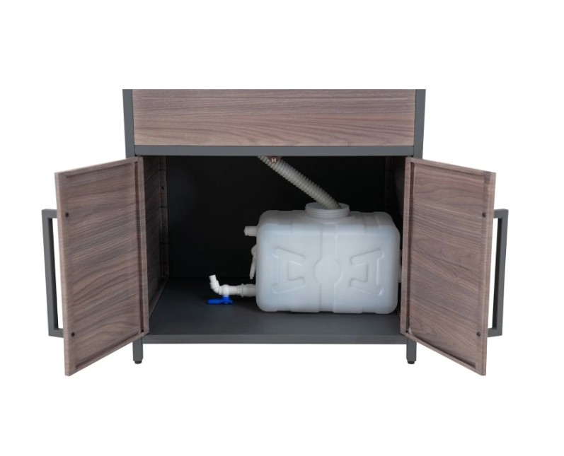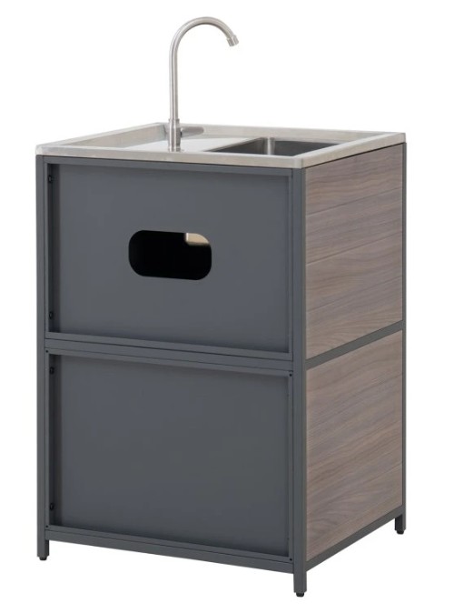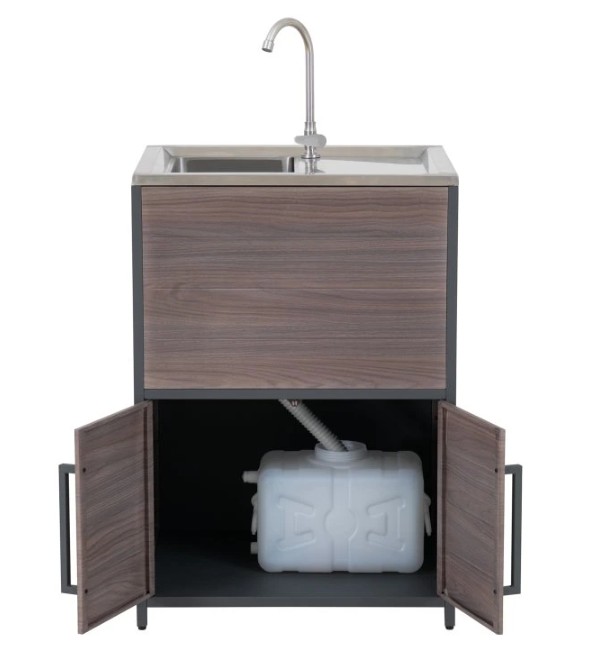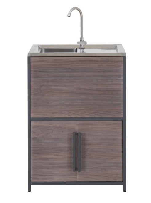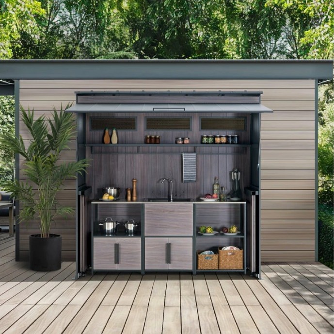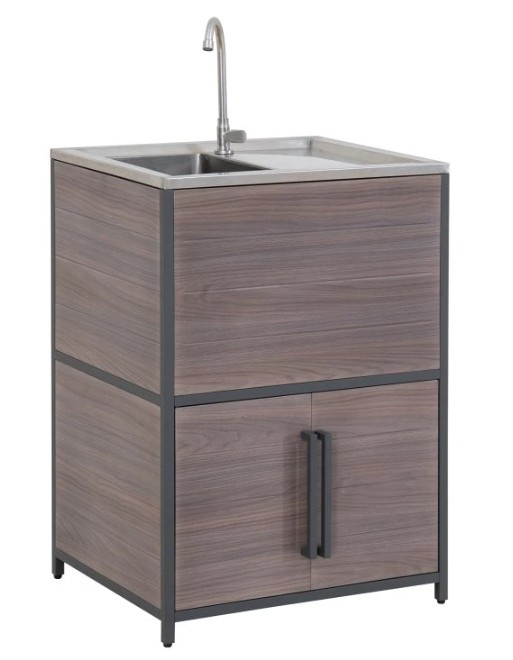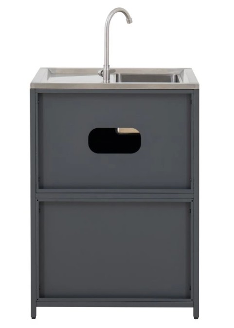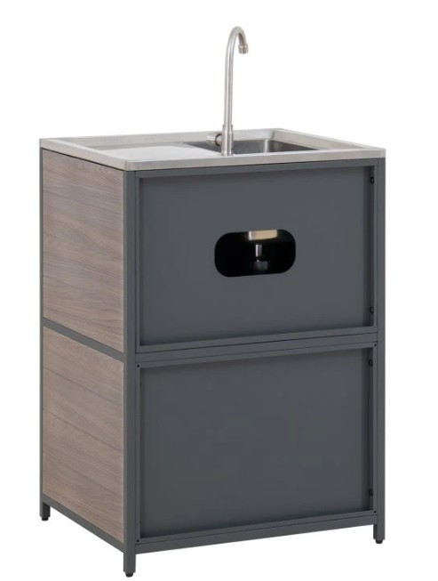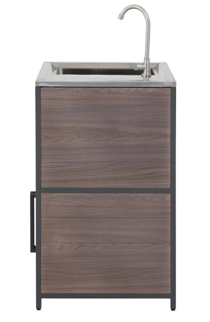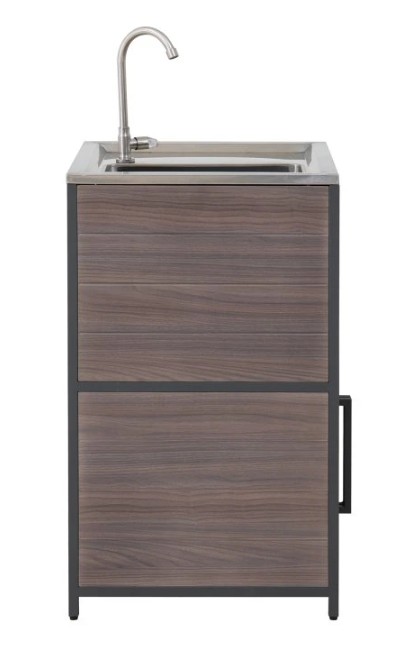 Behöver du extra utrymme för dina nödvändigheter inom utomhusköket? Leta inte längre än till skåpet med dubbeldörrar, som ger gott om förvaring för att hålla allt organiserat och inom räckhåll.